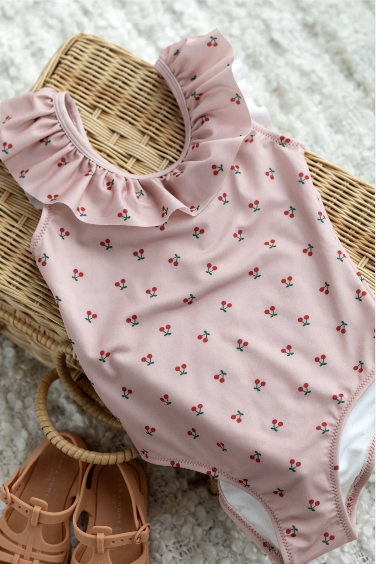 ميزات ملابس سباحة صغيرة للأطفال مكشكشة بنمط الكرز من chipiques