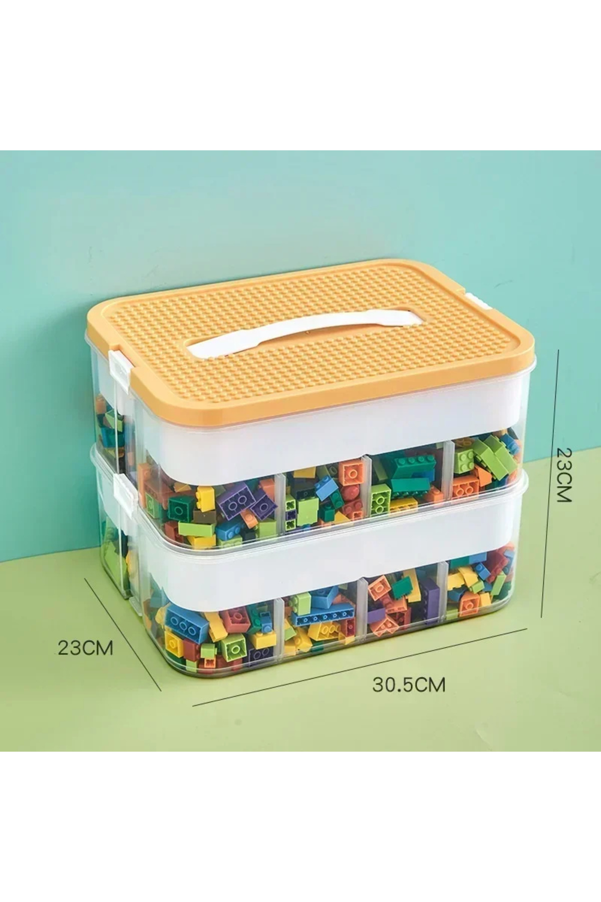 Choice صندوق تخزين مكعبات البناء القابل للتكديس باللون الأصفر مكون من طبقتين، شفاف مقاوم للغبار والرطوبة، مصنوع من البلاستيك