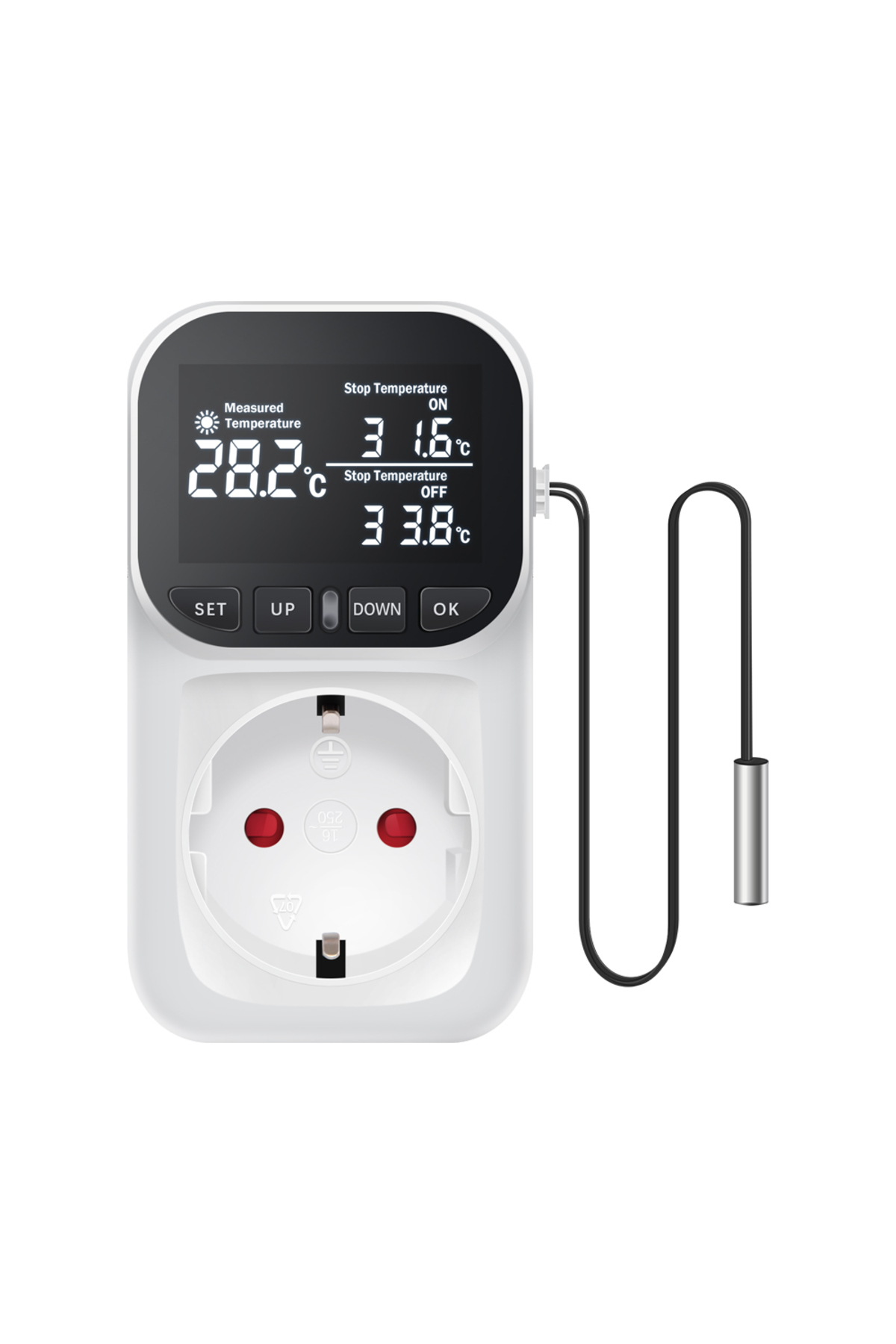 ميزات مخرج تحكم حراري متعدد الوظائف أسود-أوروبي 16 أمبير مع مفتاح مؤقت ومستشعر P من Choice