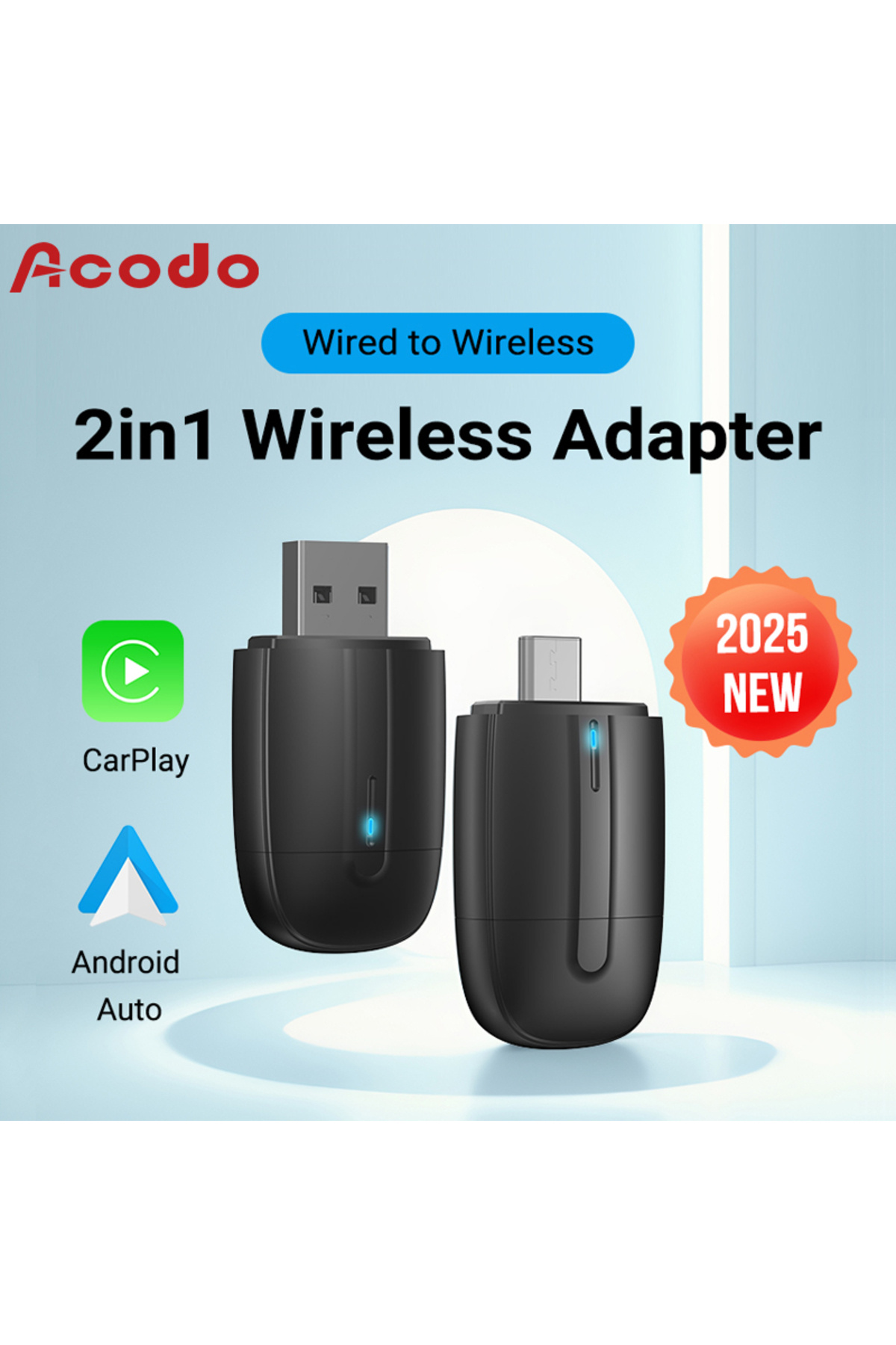 Choice كاربلاي وأوتو أكودو 2025 محول لاسلكي صغير جديد بواجهة مزدوجة وظيفة كاربلاي/أندرويد أوتو 2 في 1