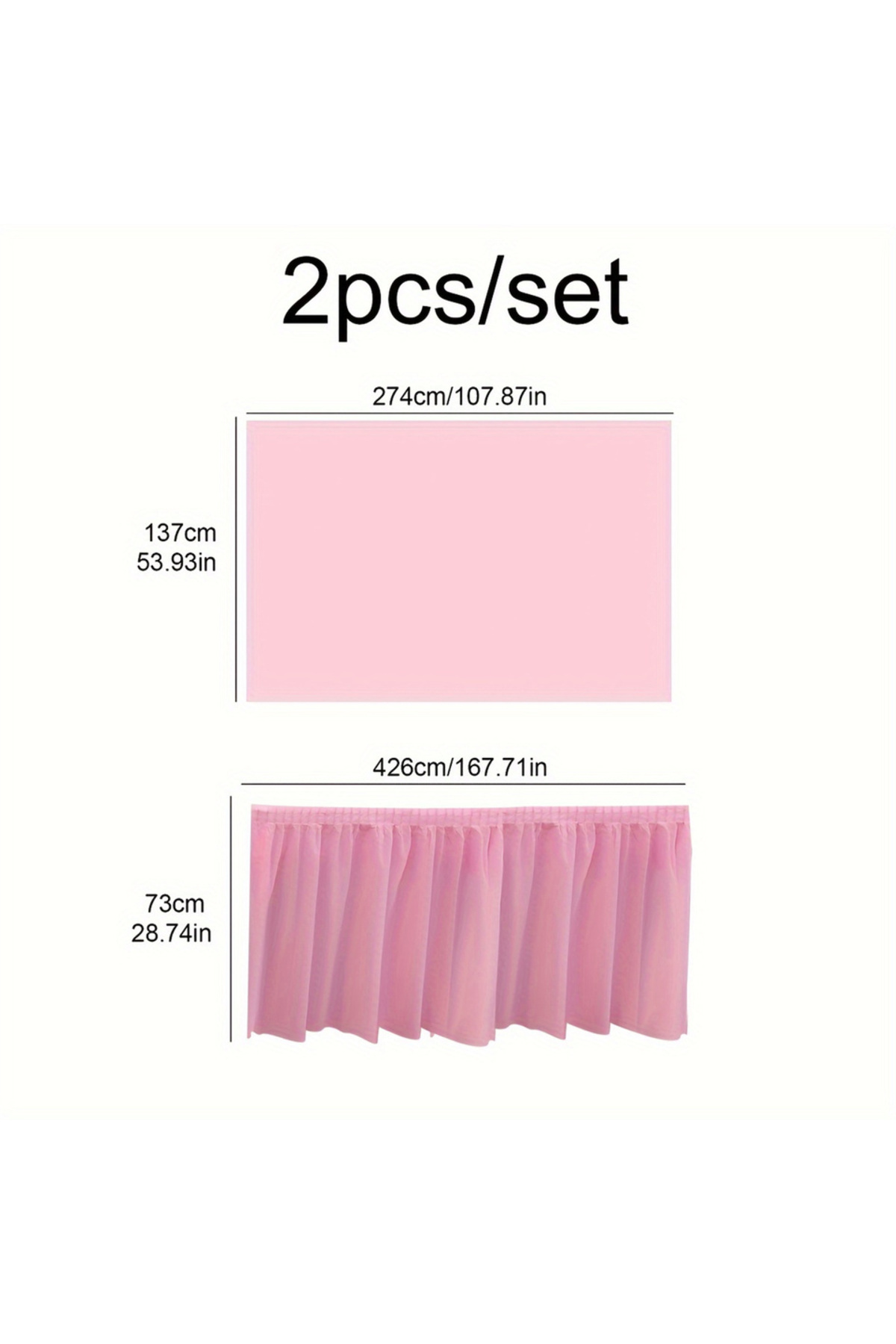 Choice طقم مفرش طاولة وردي مكون من قطعتين، غطاء طاولة بلون سادة للاستخدام مرة واحدة، تنورة طاولة، غطاء طاولة ورقي مستطيل