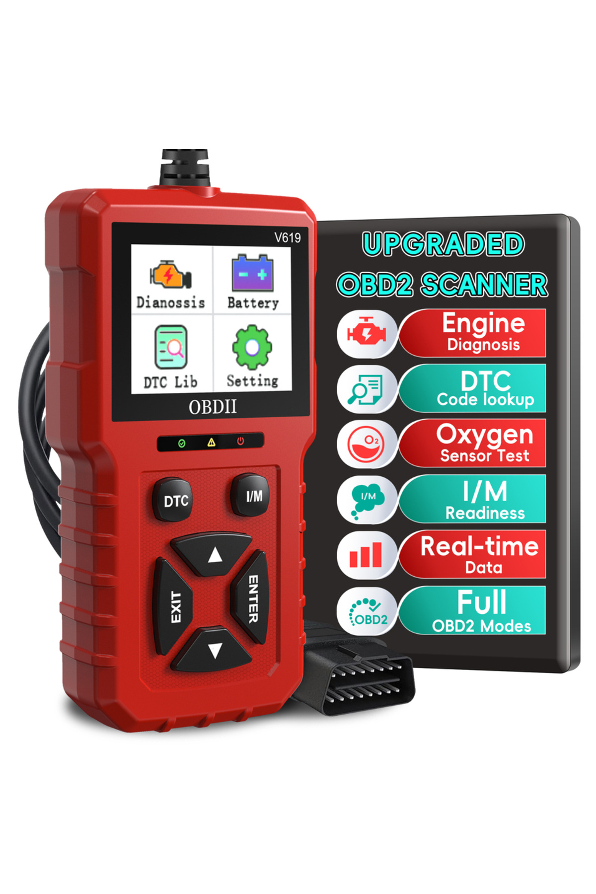 ميزات جهاز فحص أعطال OBD2 أحمر، قارئ أكواد فحص المحرك مع خاصية إعادة الضبط، جهاز فحص أعطال السيارات OBDII/EOBD مُحسّن من Choice