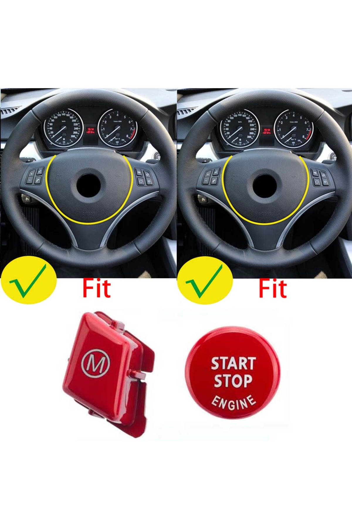 Choice غطاء بديل وزر تشغيل وإيقاف المحرك على شكل حرف M لعجلة القيادة باللون الأحمر لسيارة BMW الفئة الأولى E81 E82 E