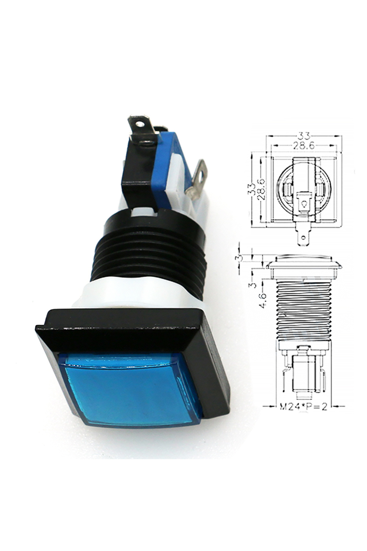 ميزات زر ضغط لعبة الأركيد المربع الأزرق 12 فولت لمبة ليد مربعة الشكل على شكل مثلث مستطيل مع برغي 24 مم F من Choice