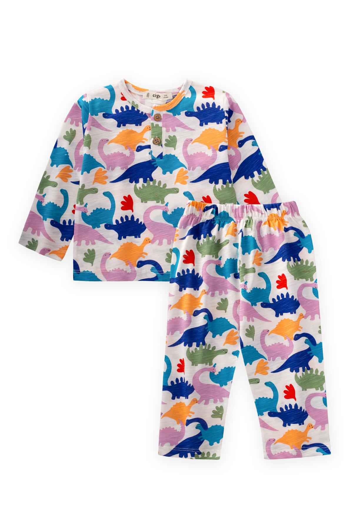 ميزات طقم بيجامة منقوشة بنمط ديناصور لعمر 1-7 سنوات من Cigit