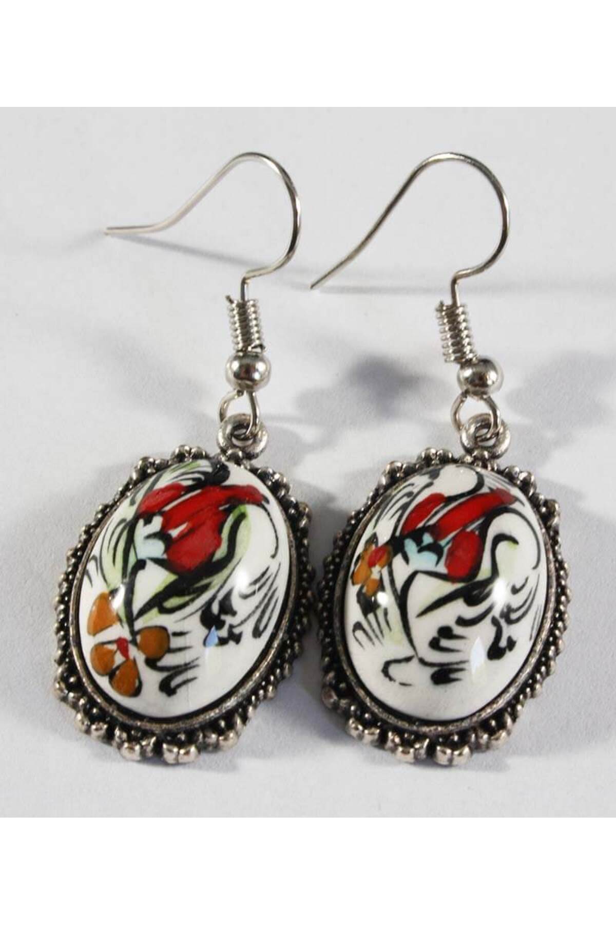 Çini Evi طقم أقراط من الخزف على شكل زهرة التوليب من هاليتش
