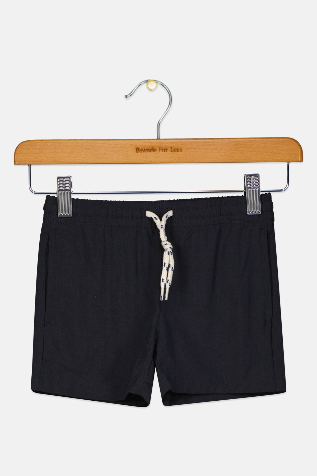 ميزات شورت أساسي بجيوب جانبية ورباط للأولاد الصغار، أسود مغسول من Class Club