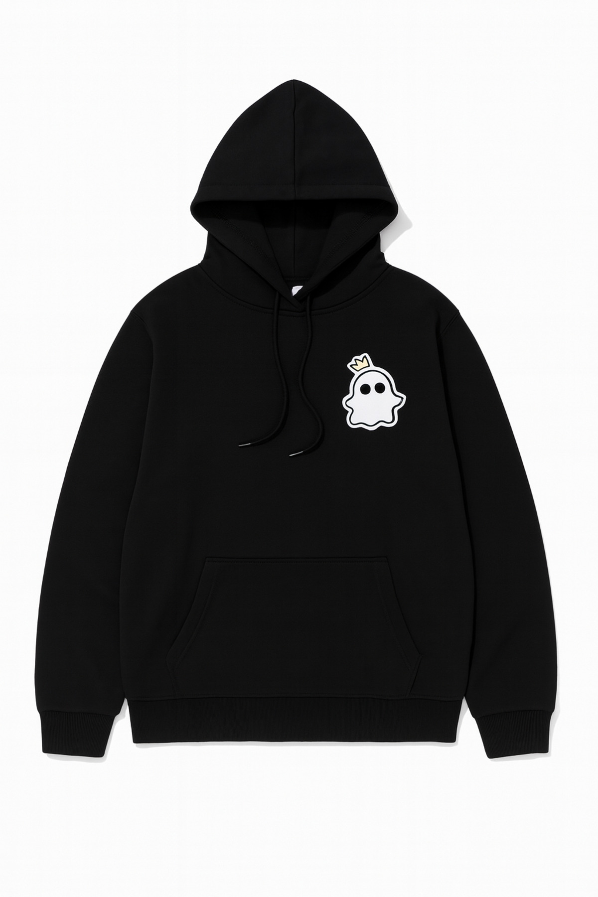 CLASSY.MODA سويت شيرت كبير الحجم بقلنسوة و3 خيوط مطبوع عليه تاج شبح