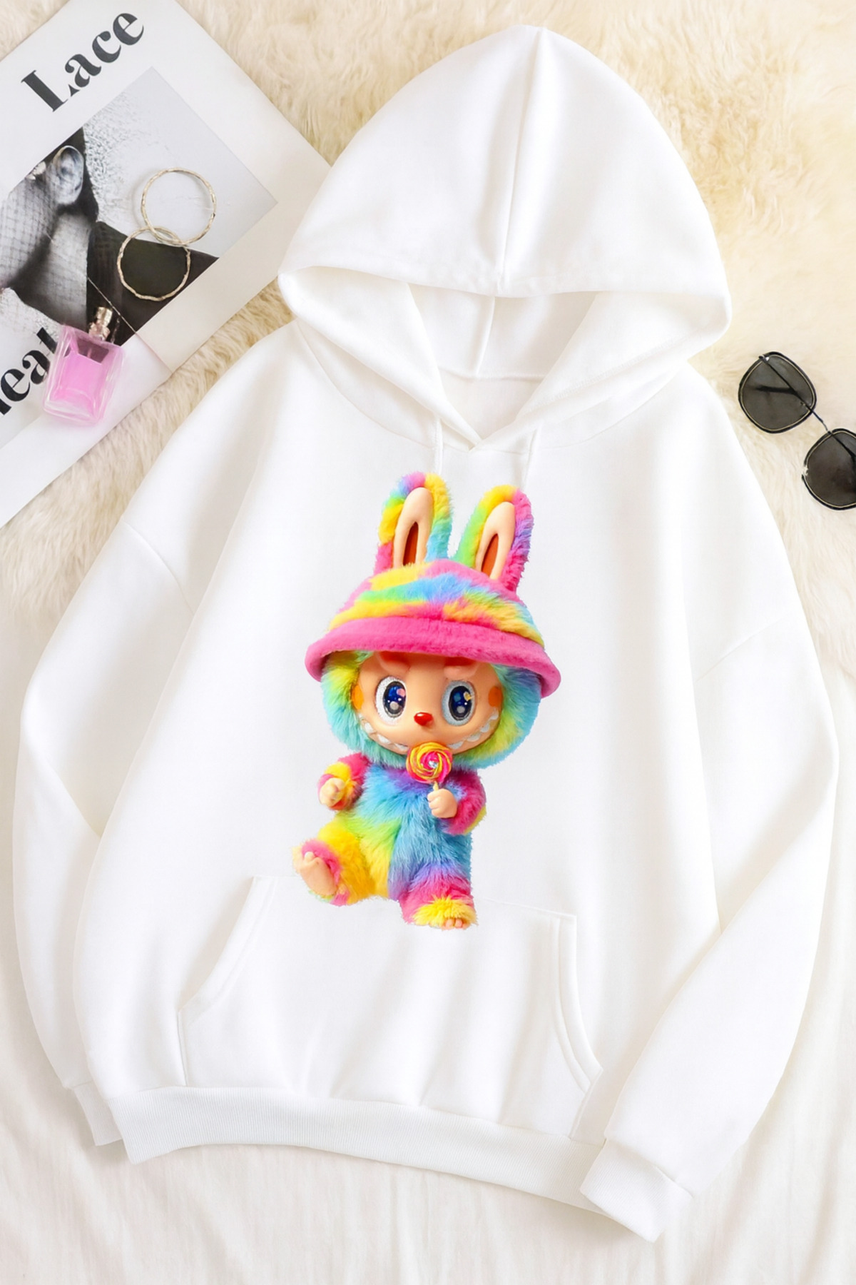 ميزات سويت شيرت مطبوع عليه 3 خيوط للجنسين مقاس كبير – نمط أرنب لابوبو من CLASSY.MODA