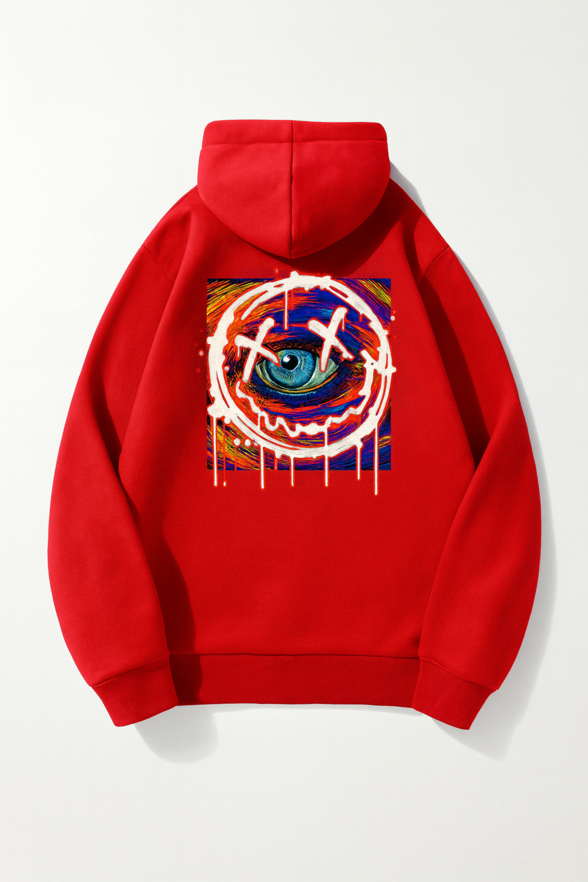 CLASSY.MODA سويت شيرت بقلنسوة بنمط وجه جرافيتي بعين واحدة