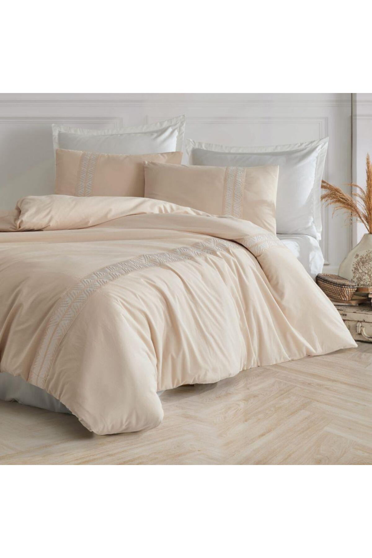 ميزات طقم غطاء لحاف مزدوج من Borderline Ranforce Olerin V1 بيج من Clasy