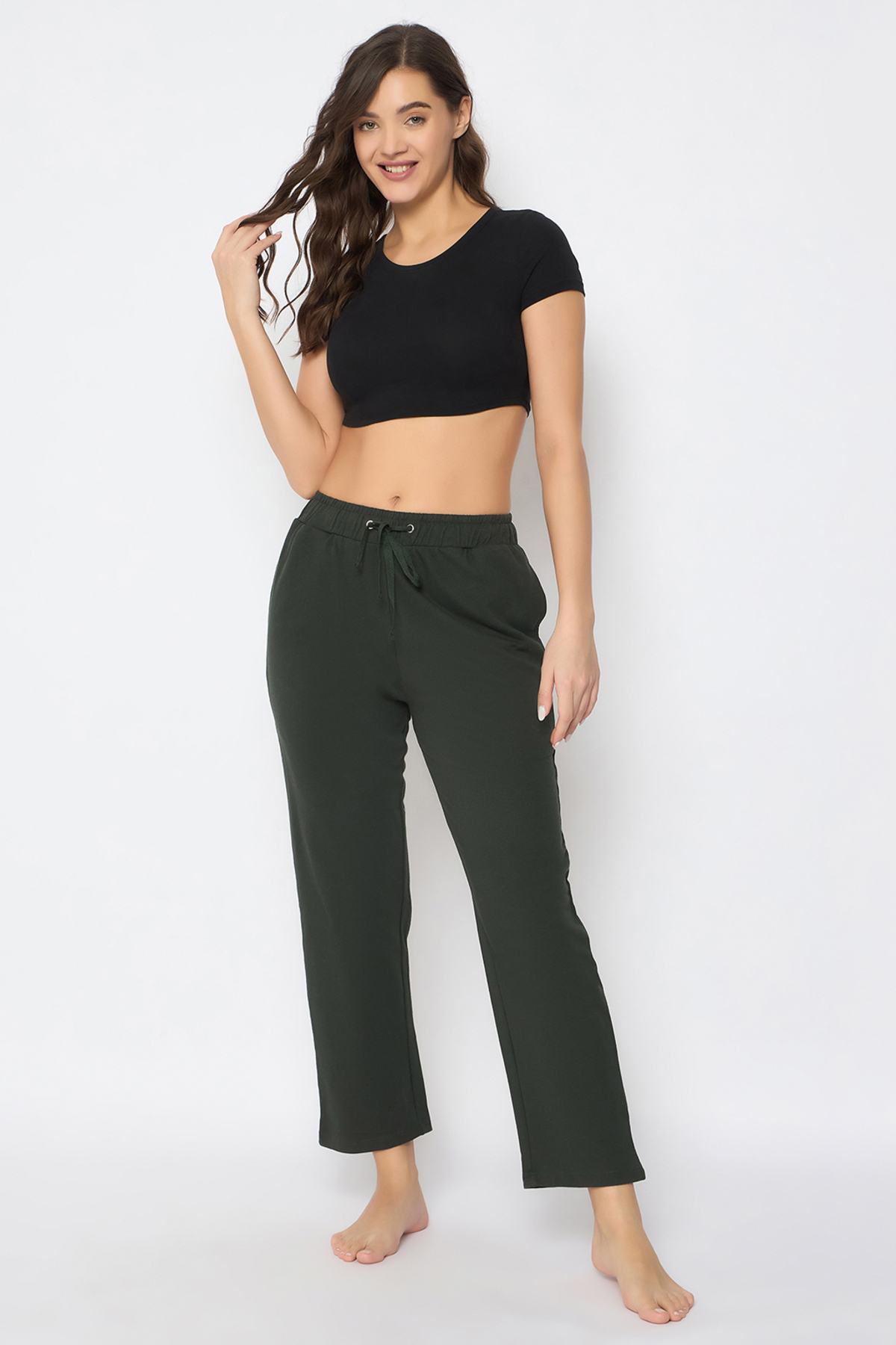 Clovia بيجامة أنيقة باللون الأخضر الزيتوني - قطن