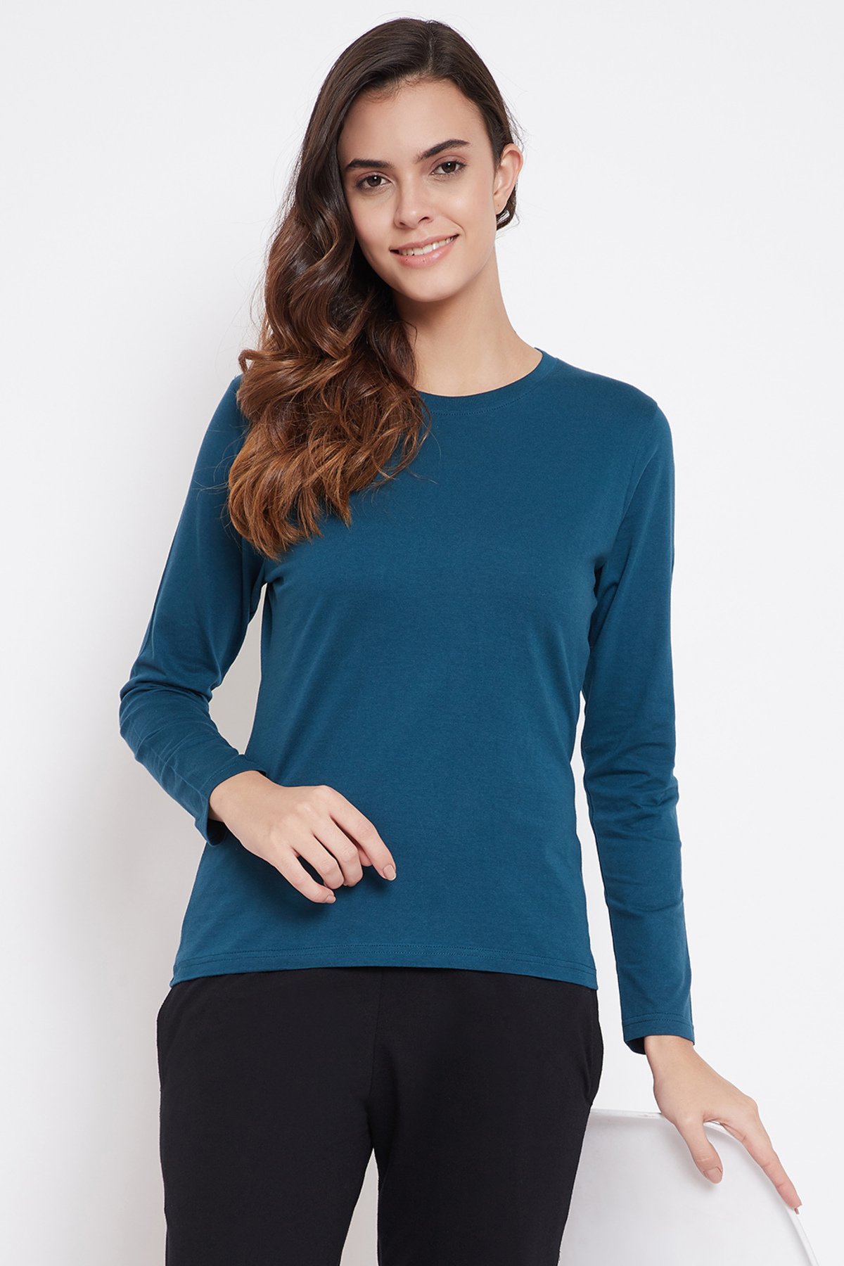 ميزات بلوزة نوم أساسية أنيقة باللون الأزرق الداكن - قطن من Clovia