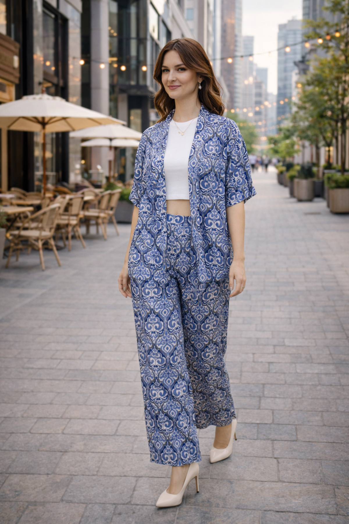 Clyfora منقوش بقصة قصيرة طقم كيمونو