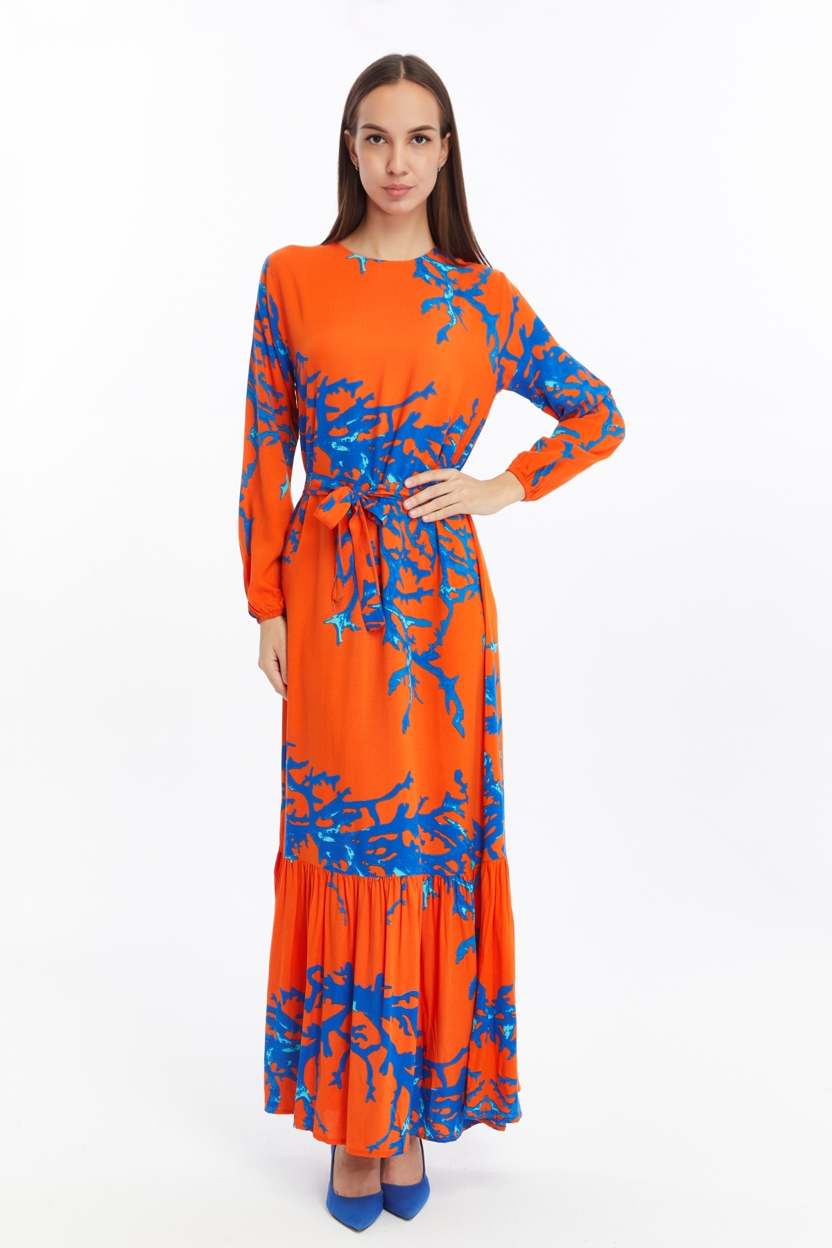 ميزات فستان دال منقوش بطيات من CNR TEKSTİL