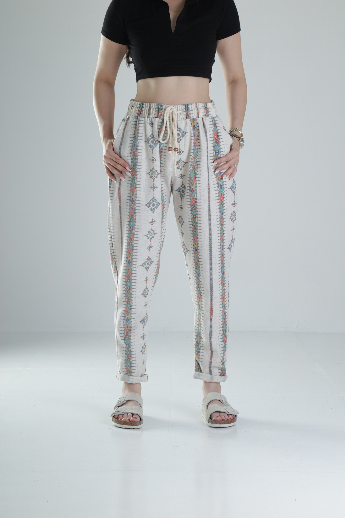 ميزات بنطلون كتان منقوش عرقي من COCOPELLI