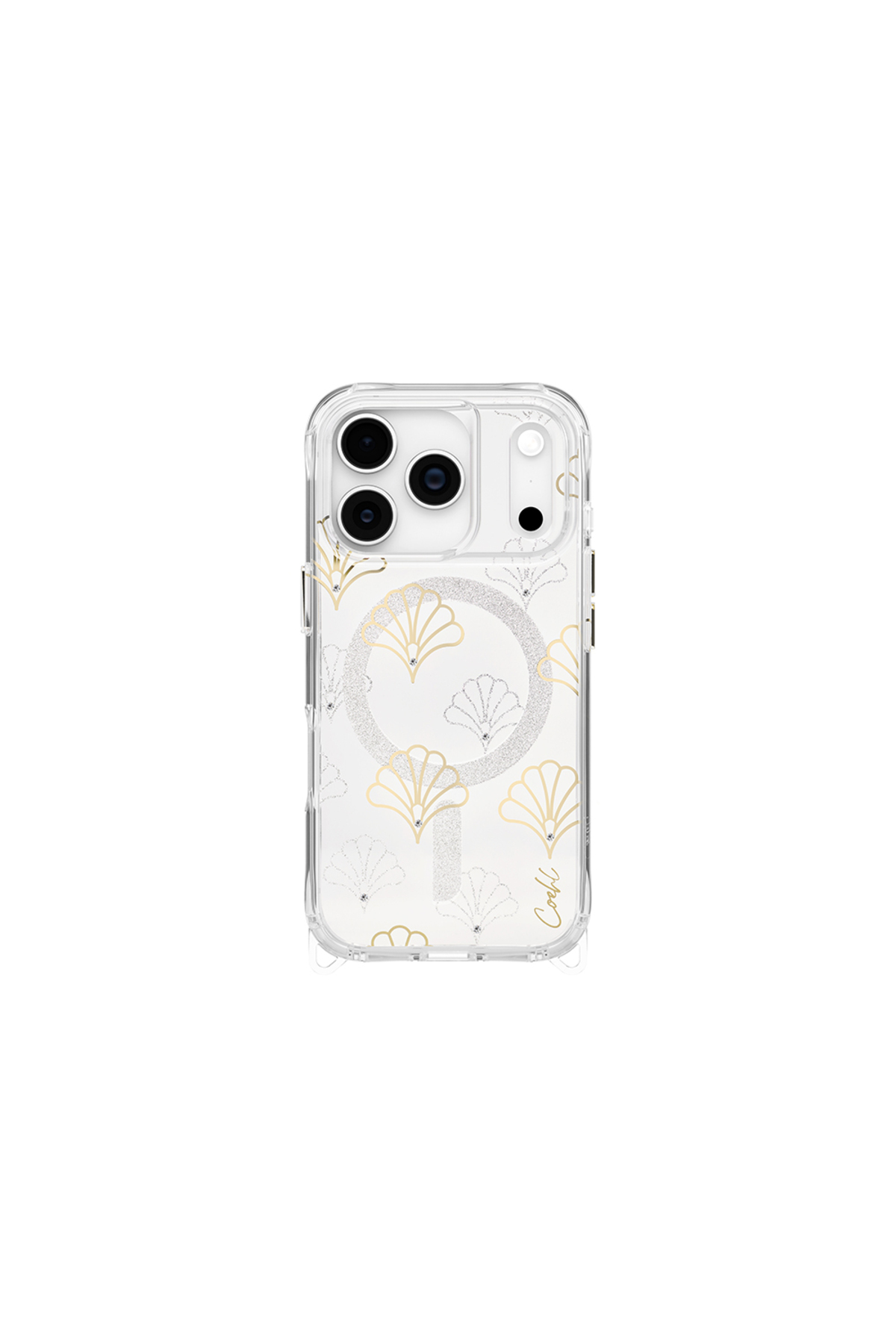 ميزات غطاء متوافق مع هاتف iPhone 17 Pro Max مزود بميزة M-safe وسطح خلفي منقوش شفاف وغطاء ماري فضي من Coehl