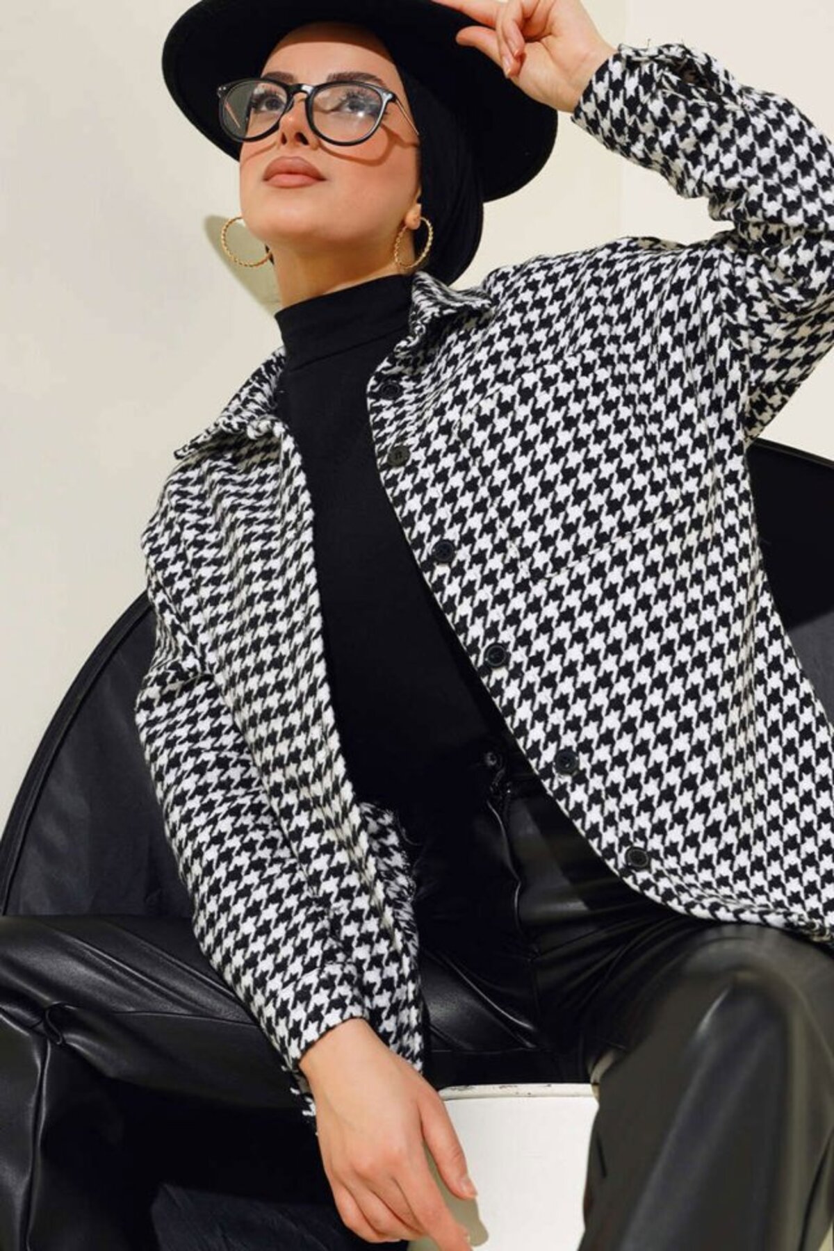 COjans 3852 قميص بنمط هاوندزتوث - أسود
