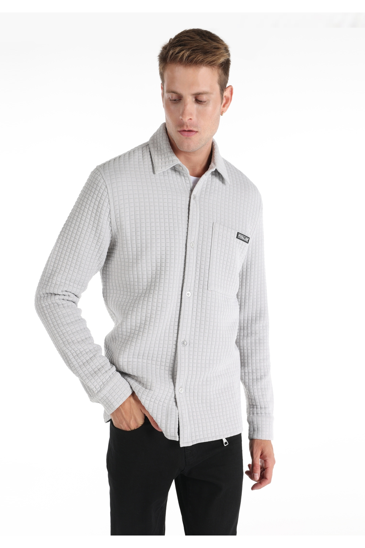 Colin’s سترة رجالية رمادية اللون بأزرار وقصة عادية