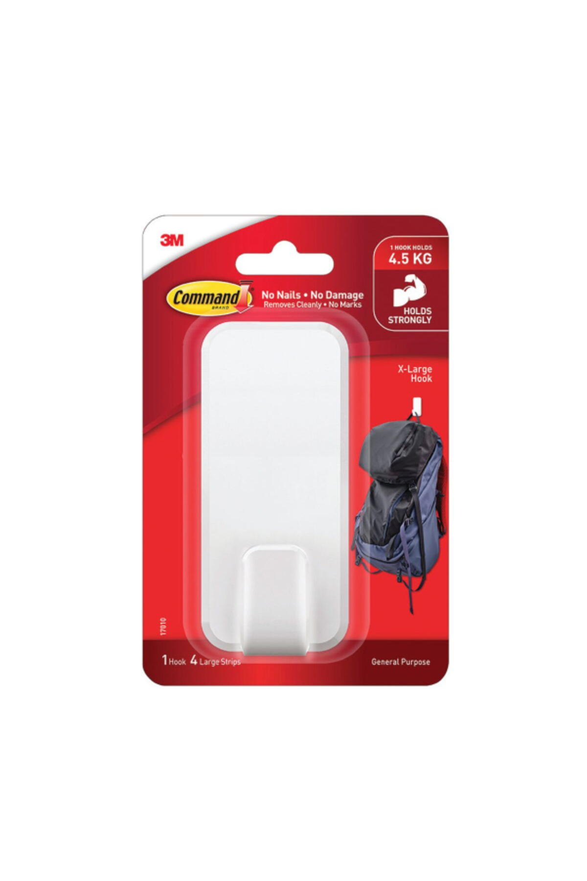 ميزات خطاف بلاستيكي لاصق ذاتي خالٍ من التلف مقاس كبير جدًا من COMMAND