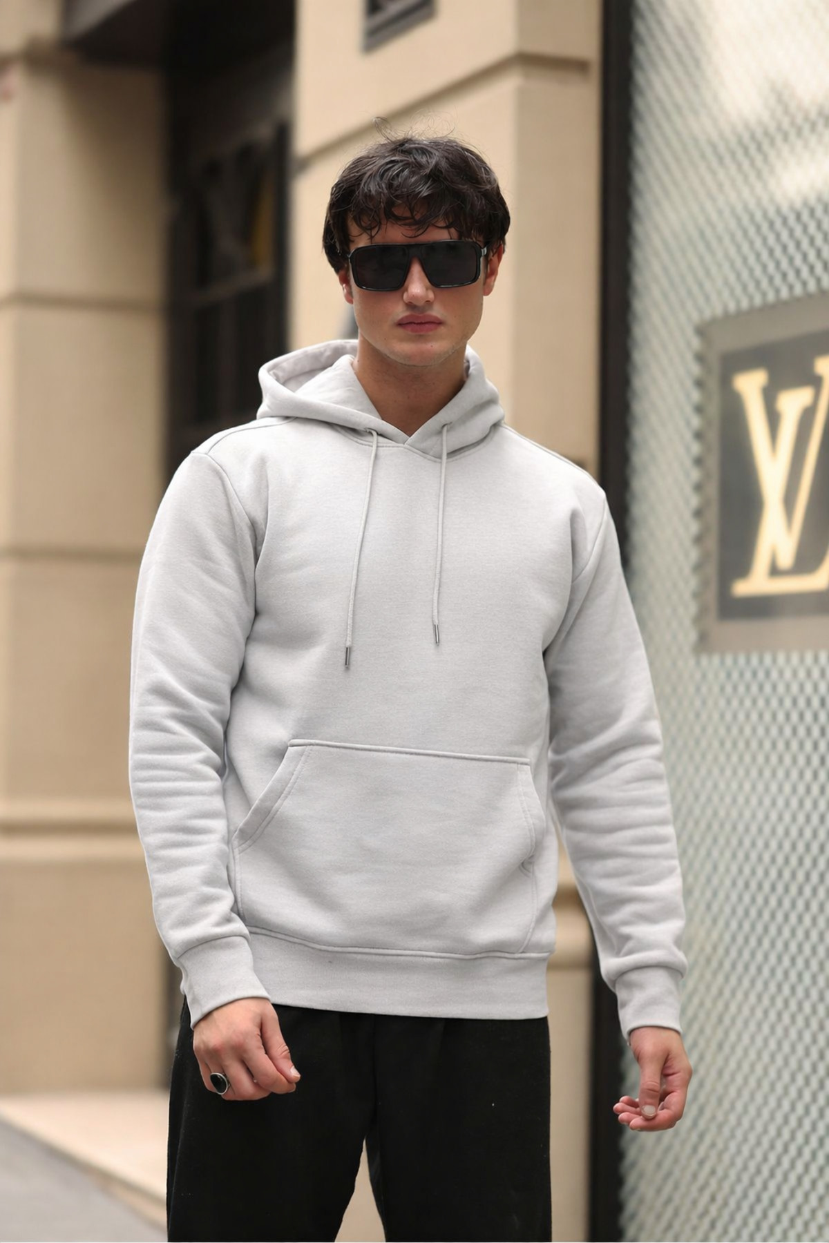 ميزات سويت شيرت رجالي ذو جيب كنغر وقلنسوة باللون الرمادي الأساسي من comstar