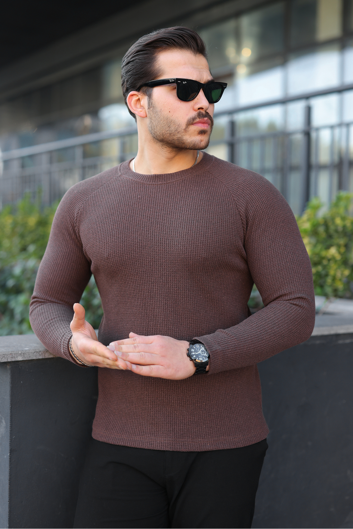 ميزات سترة رجالية من Trend Basic قصة ضيقة ذات ياقة دائرية باللون البني من comstar