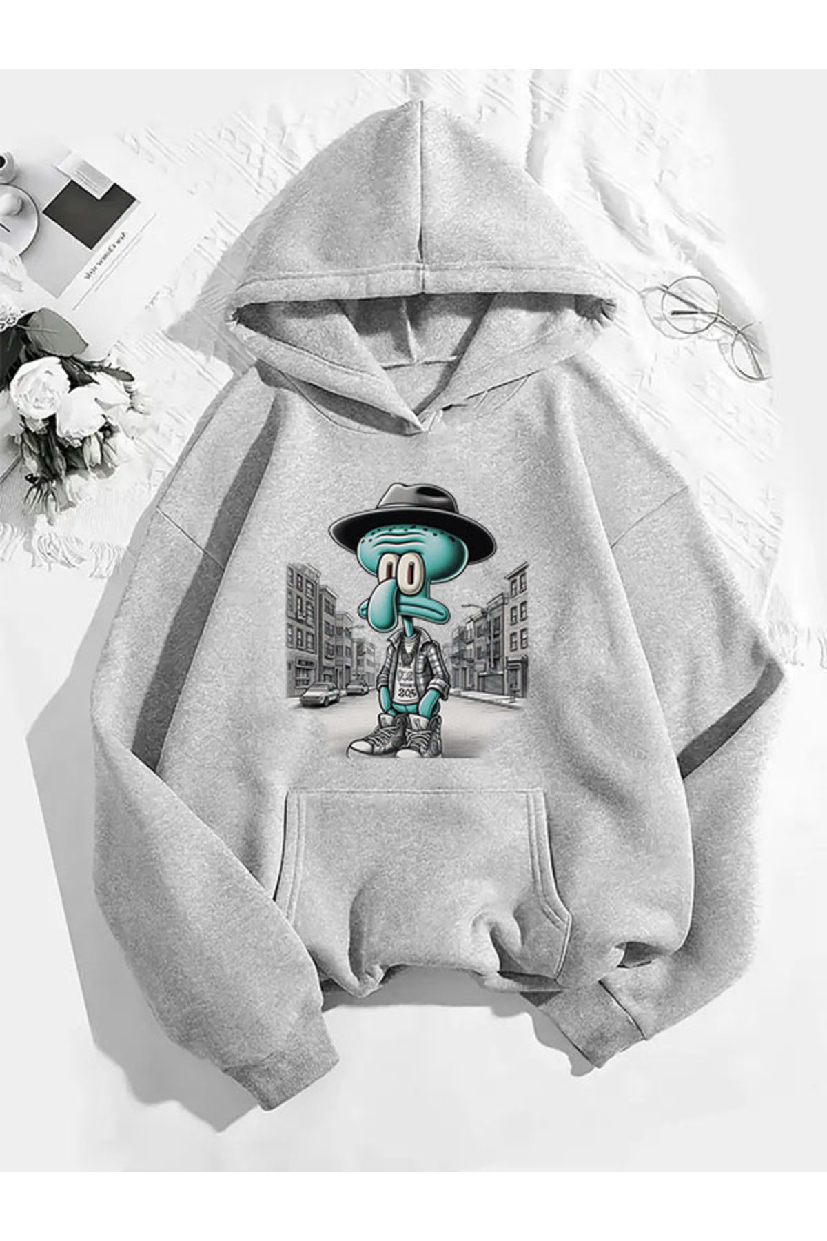 COMVİCHO CALARCITY005 سويت شيرت رمادي بقلنسوة مطبوعة