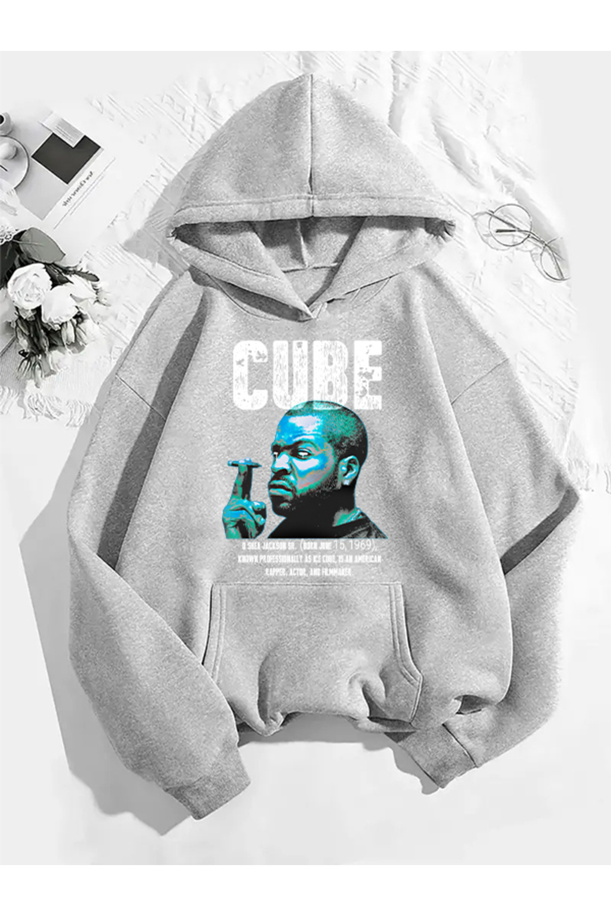 COMVİCHO سويت شيرت رمادي بقلنسوة مطبوعة من Cube v1