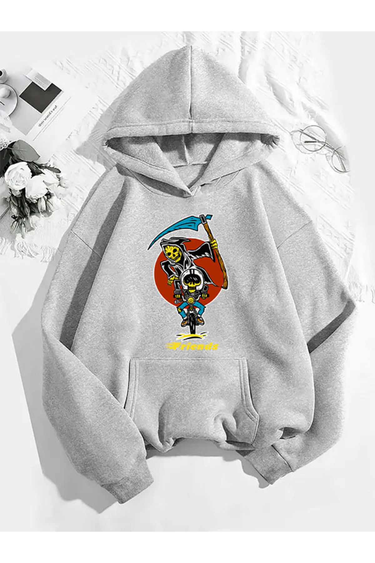 ميزات سترة رياضية رمادية مطبوعة بقلنسوة من fri من COMVİCHO