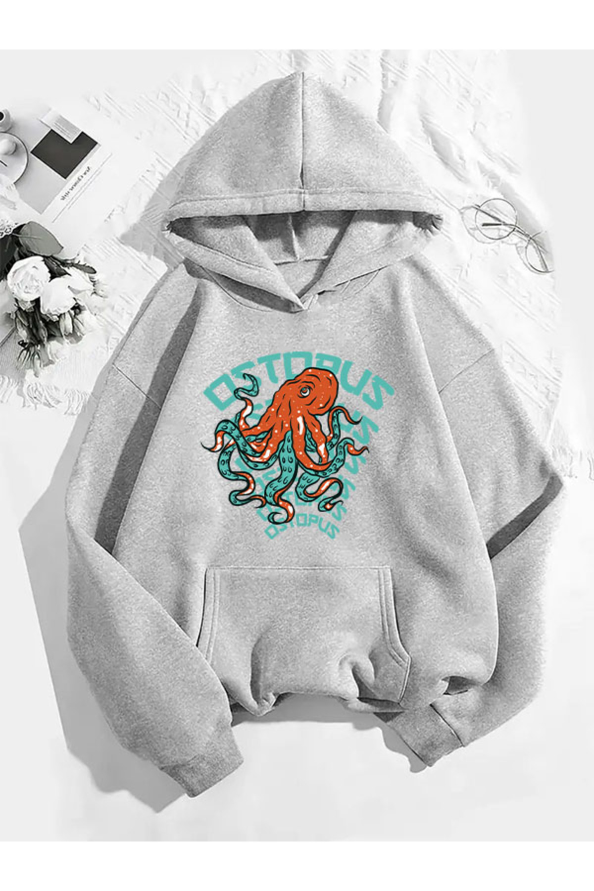 COMVİCHO سترة رياضية رمادية مطبوعة بغطاء للرأس من ostopus20
