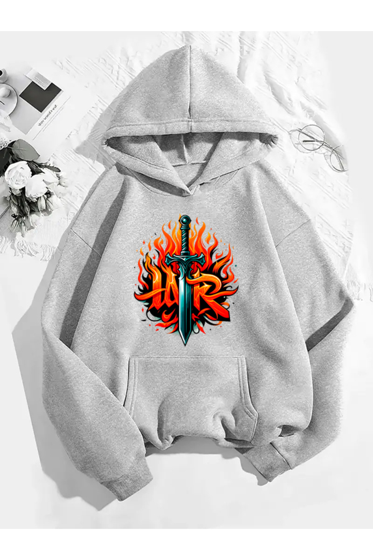 COMVİCHO war02 سويت شيرت رمادي بقلنسوة مطبوعة