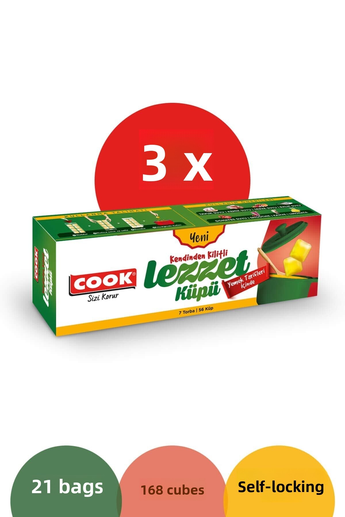 COOK مكعبات نكهة ذاتية القفل 3 عبوات
