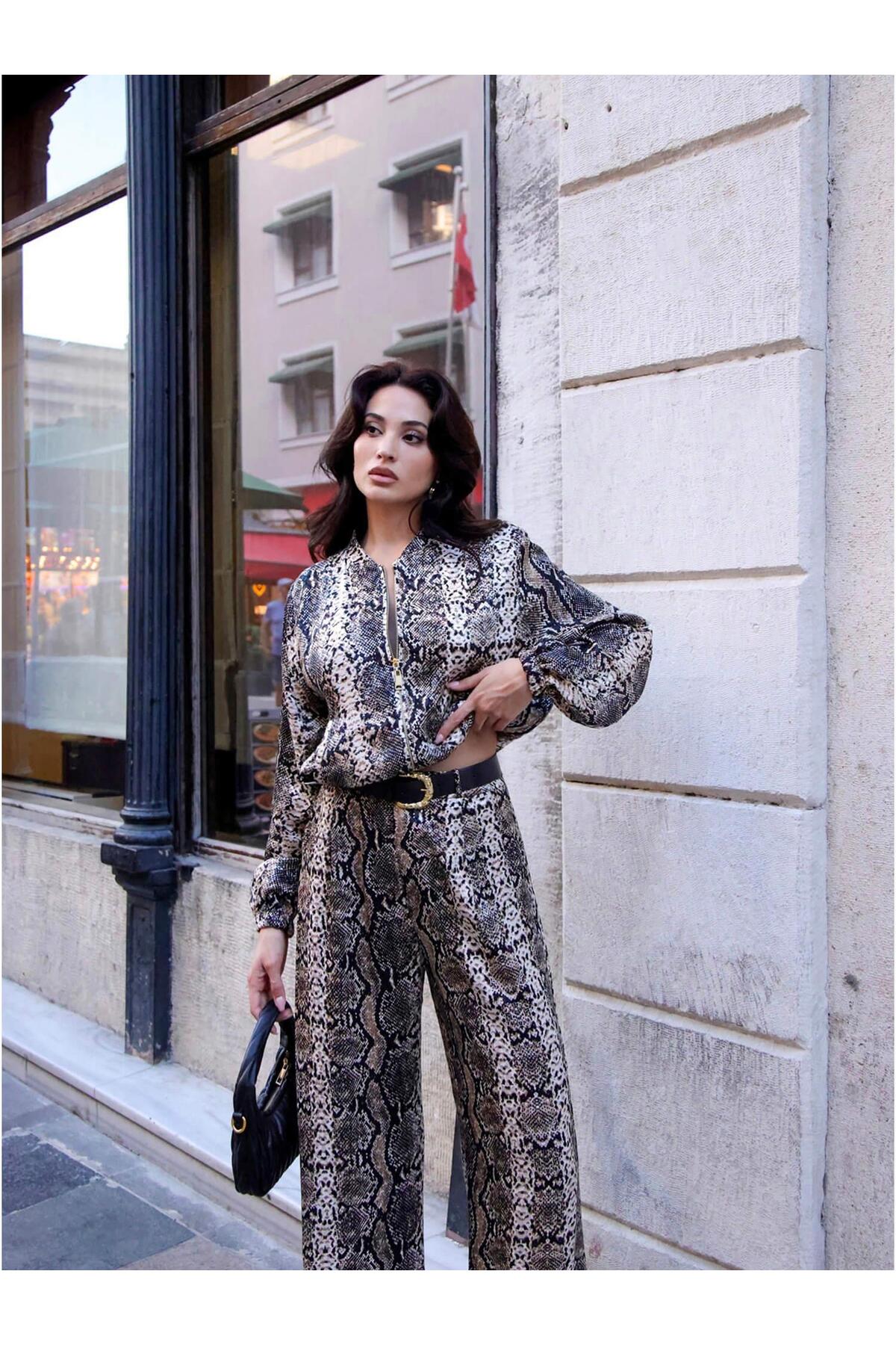 ميزات سترة بسحاب بنقشة الفهد Ckt01108 بني من Coral