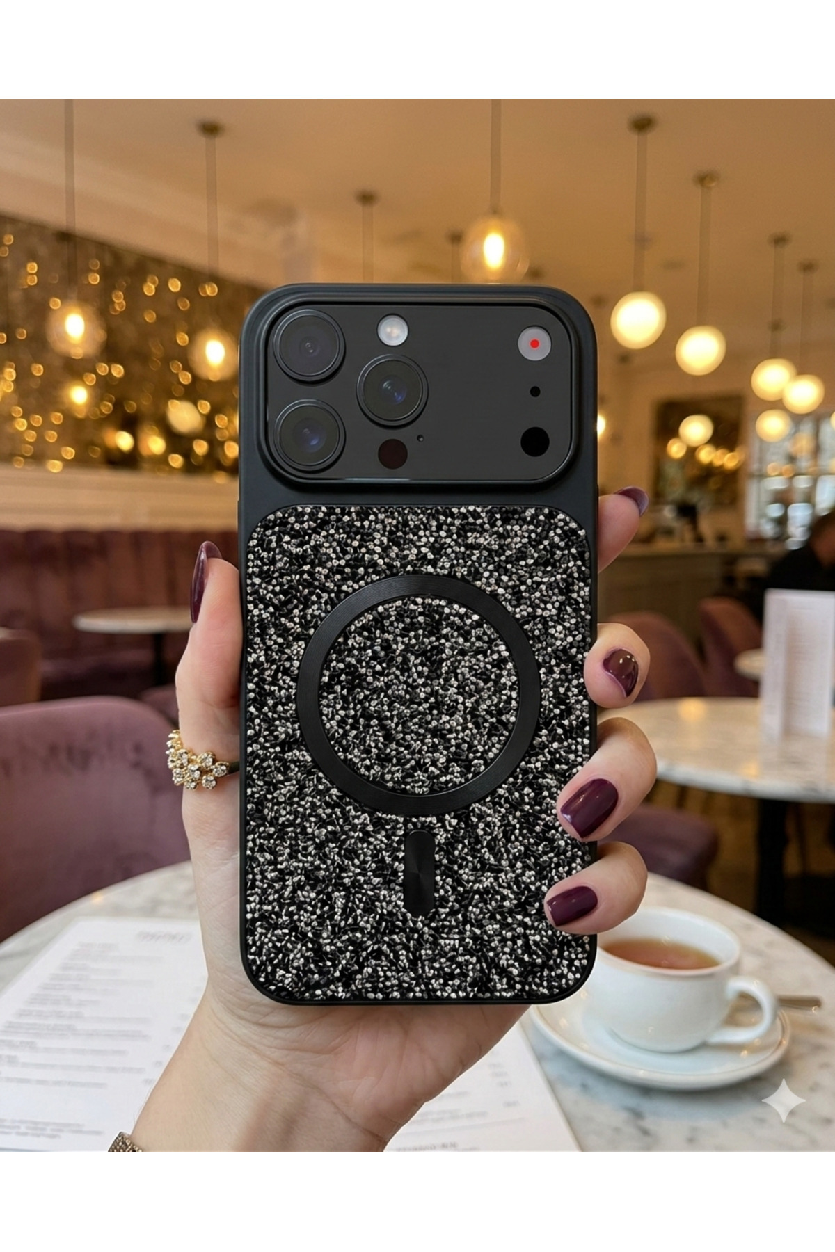 ميزات حافظة تحويلية Diamond مرصّع بالأحجار متوافقة مع هاتف iPhone 15 Pro مع ميزة MagSafe وحماية الكاميرا بمظهر 17 Pro من corcishop