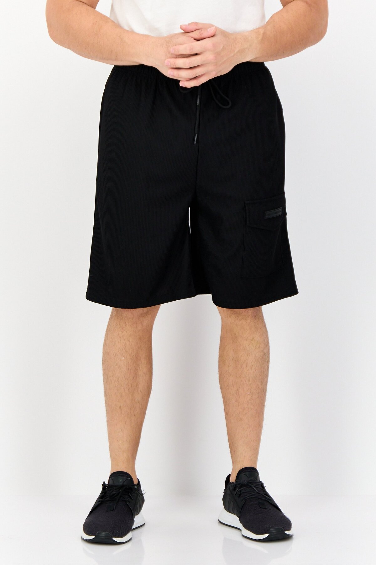 Core Elements شورت رجالي أساسي بشعار العلامة التجارية، أسود