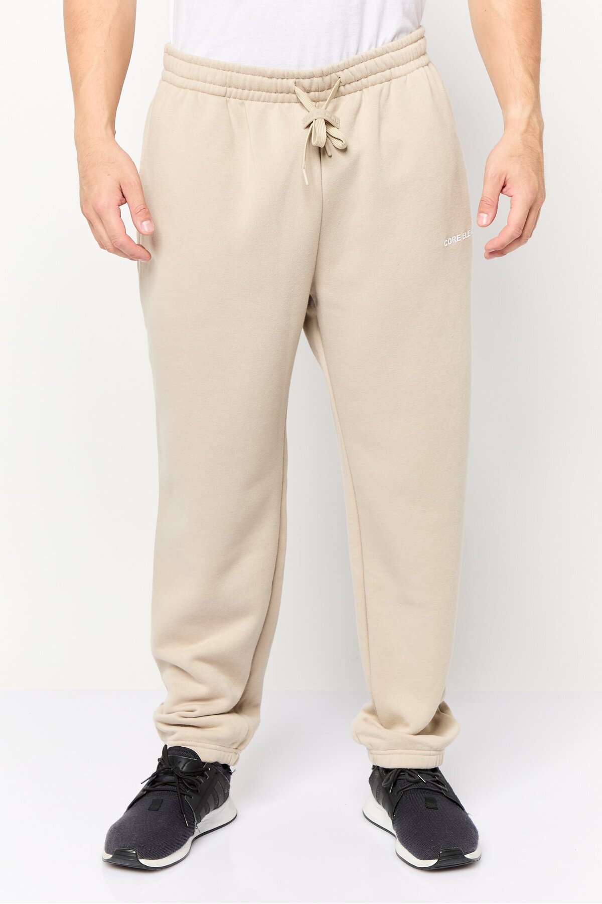 ميزات بنطال رياضي رجالي بشعار العلامة التجارية، بيج من Core Elements
