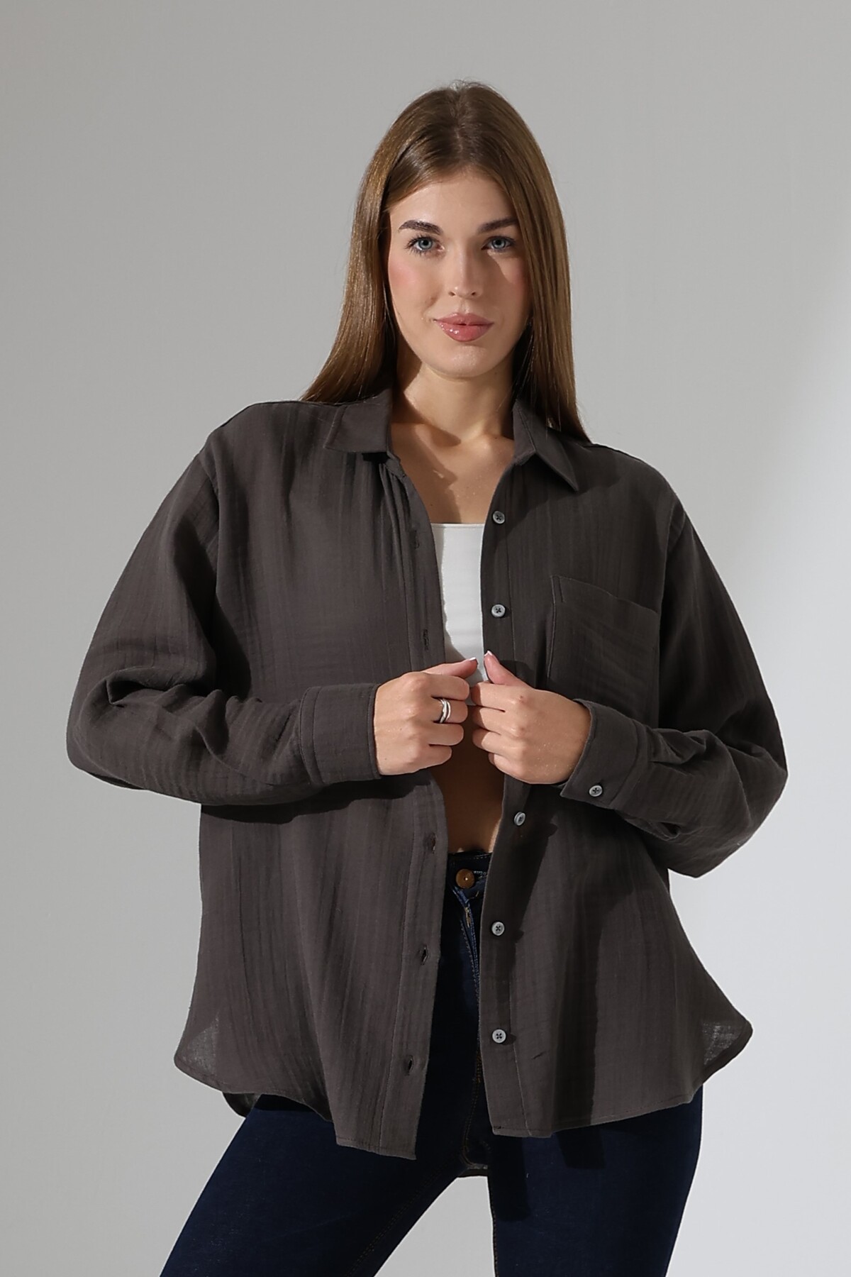 ميزات قميص موسلين أساسي كبير الحجم من Corradeo Giyim