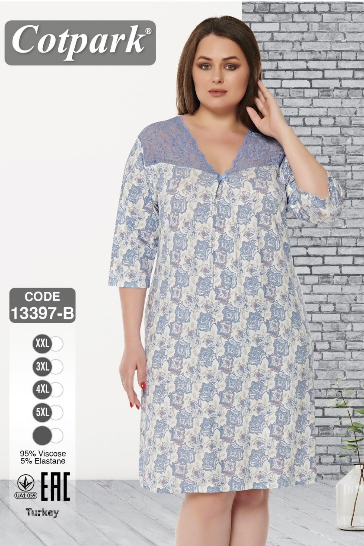 Cotpark ثوب نوم منقوش من الدانتيل مقاس كبير