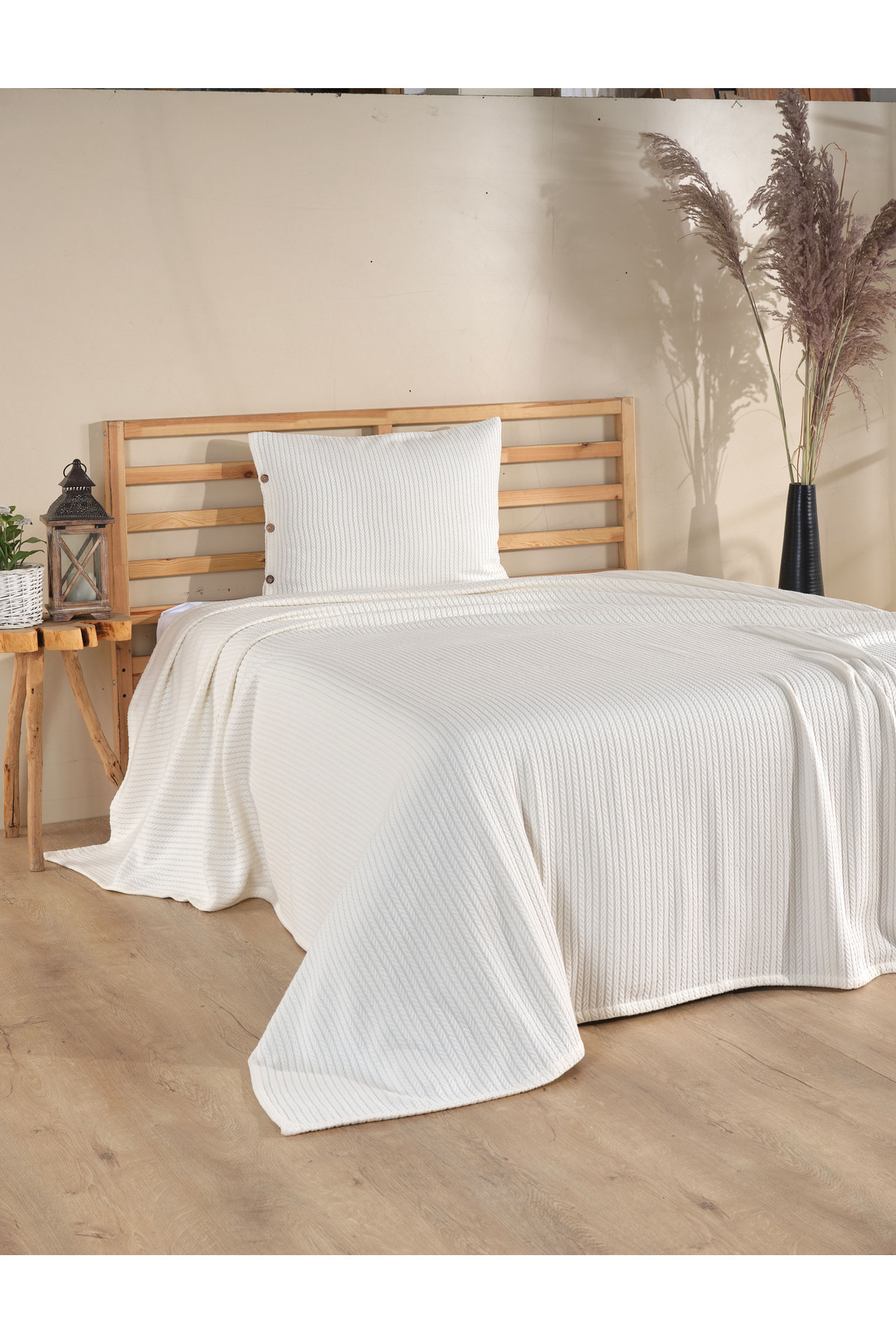 Cottonest طقم مفرش سرير مفرد بلون إكرو مع غطاء وسادة واحد