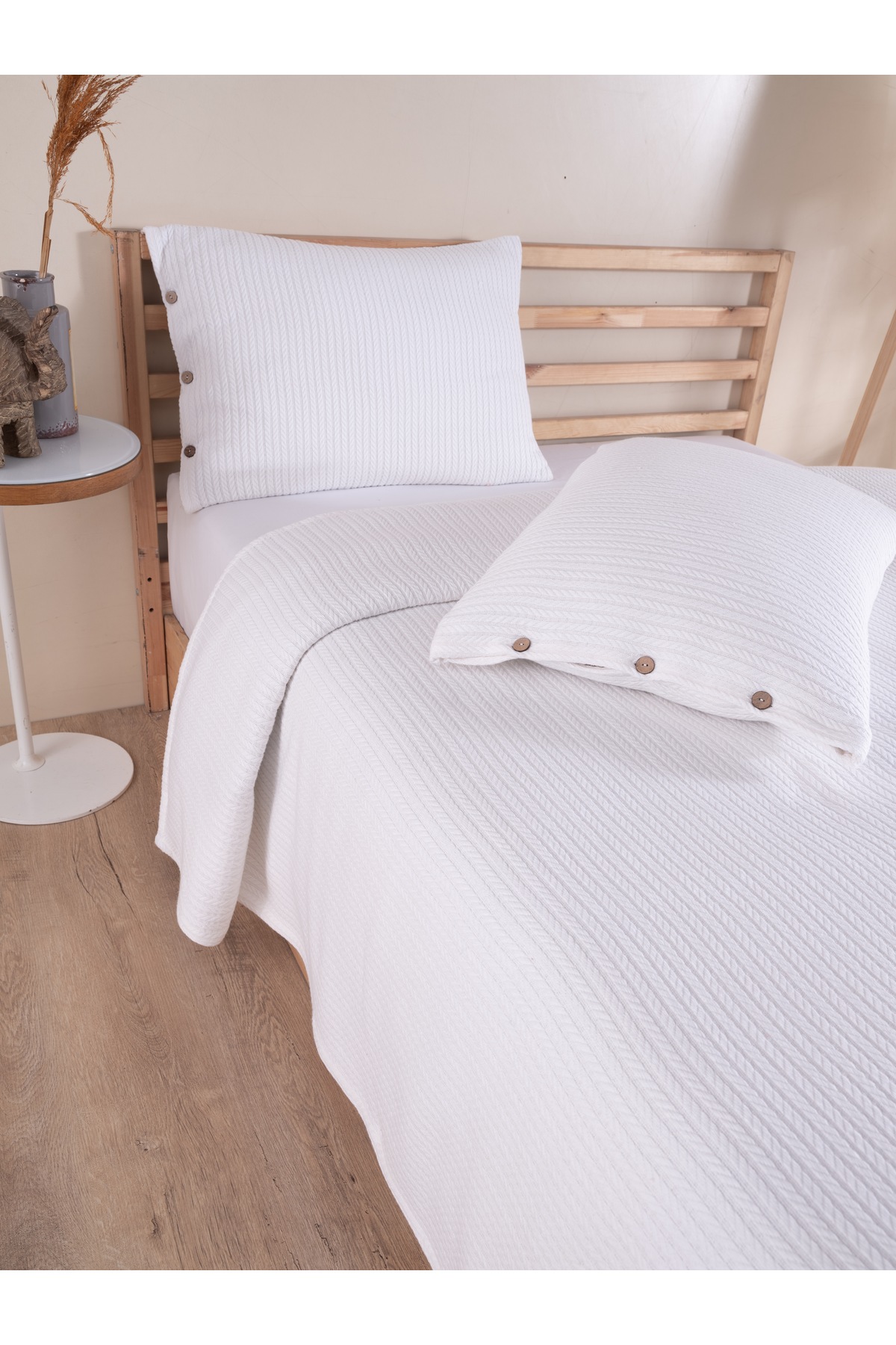 ميزات طقم مفرش سرير أبيض مفرد مع غطاء وسادة واحد من Cottonest
