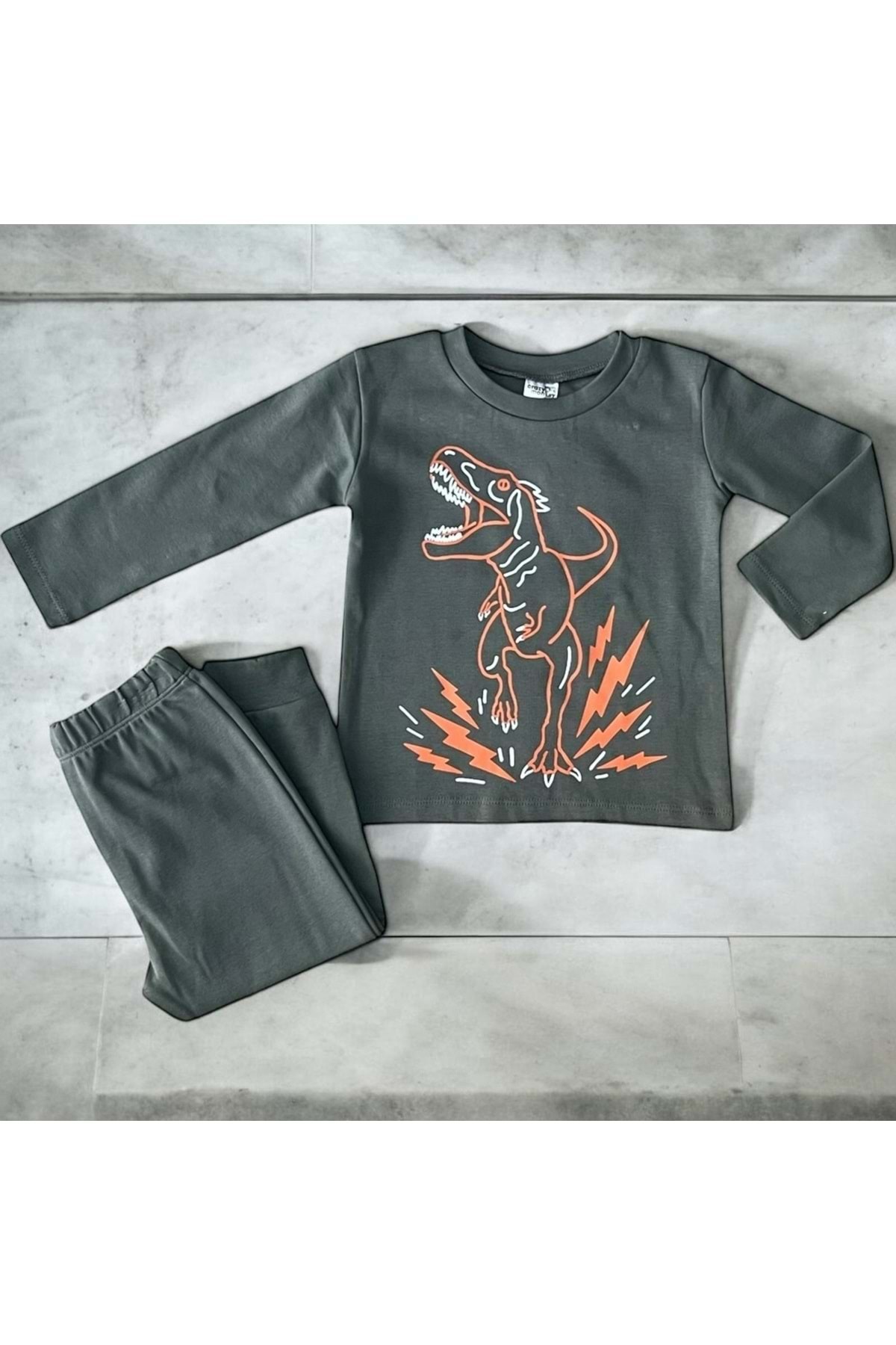 CRAZY MONKEY طقم بيجامة ديناصور كاكي