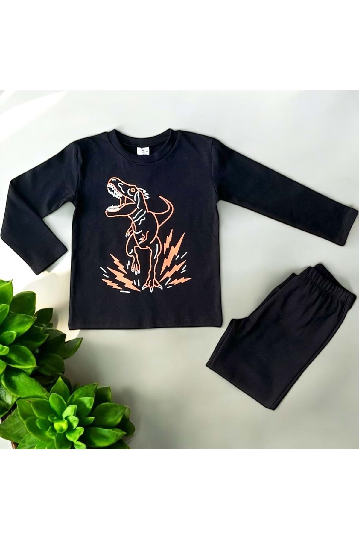 CRAZY MONKEY طقم بيجامة ديناصور أسود
