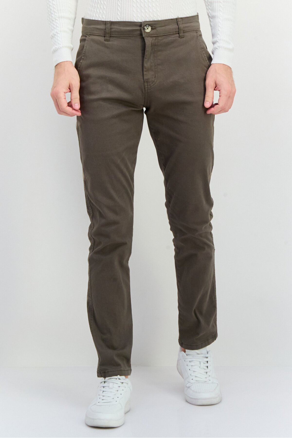 Crosshatch بنطال تشينو سادة بقصّة Slim Fit للرجال، زيتوني