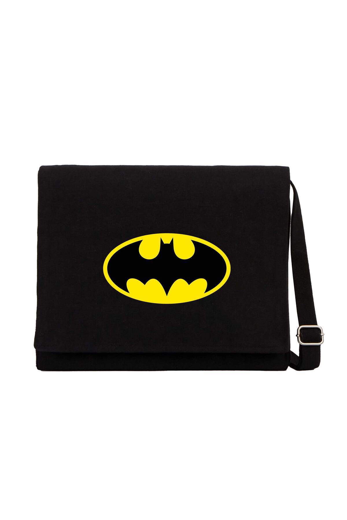CrowsGate حقيبة ماسنجر من القماش الأسود بشعار باتمان