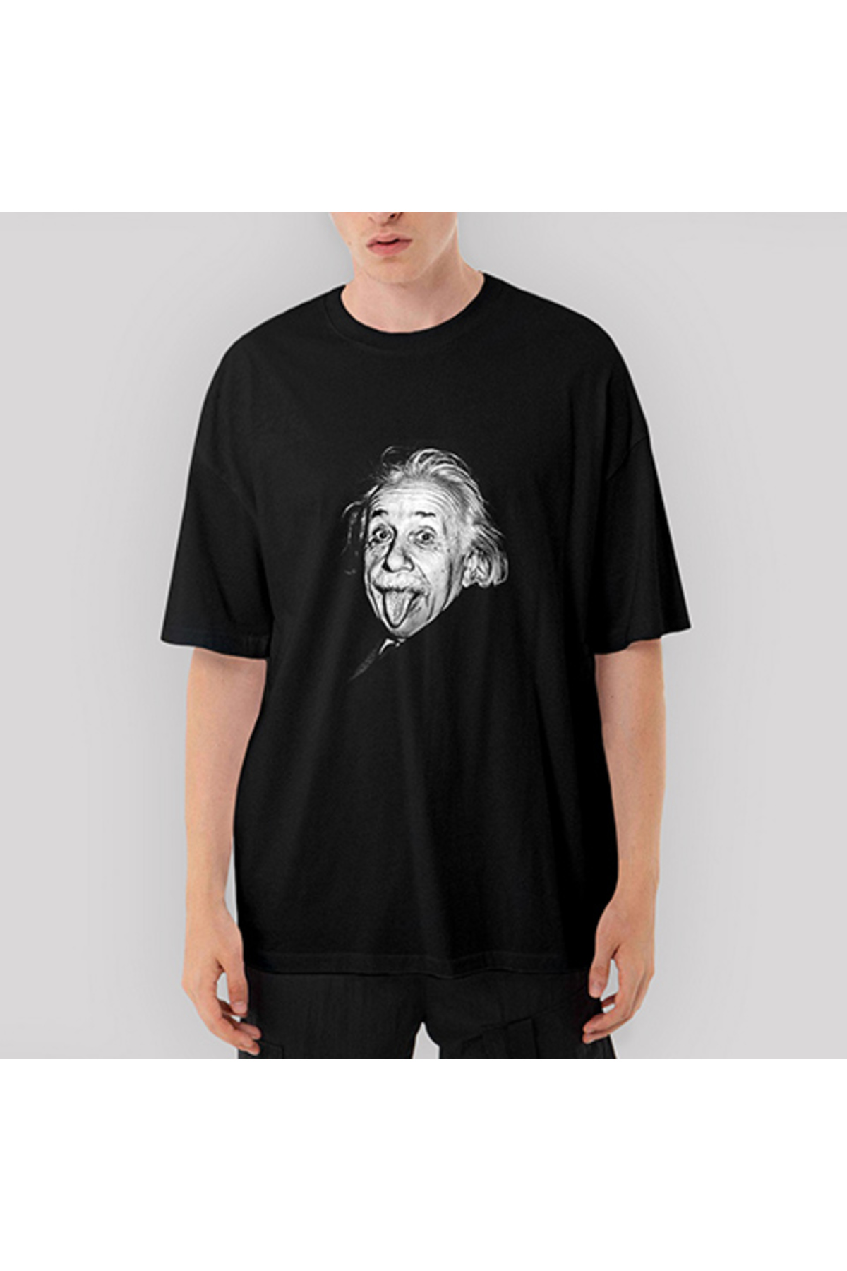 ميزات تي شيرت أسود كبير الحجم مبطن من أينشتاين من CrowsGate