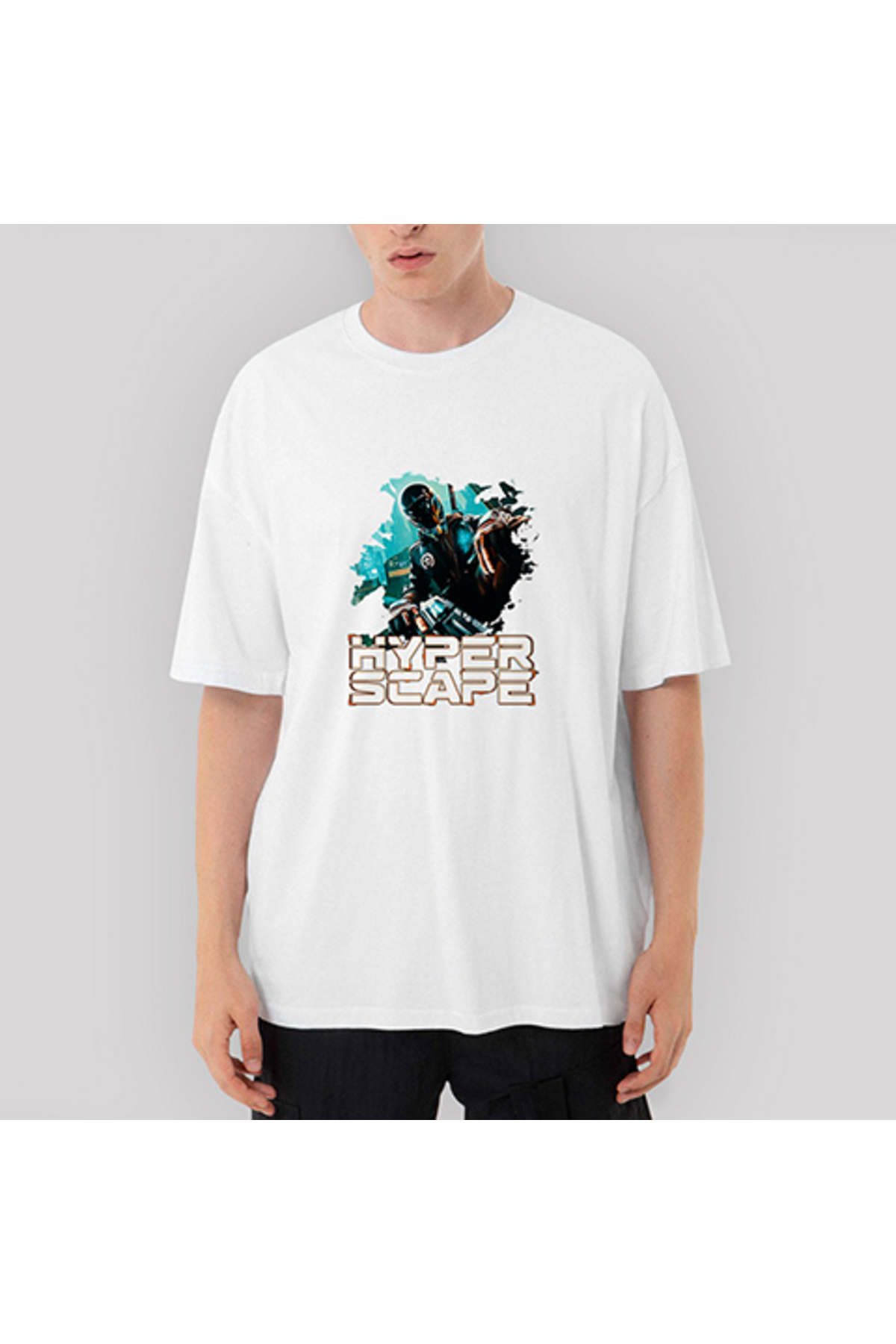 CrowsGate تي شيرت أبيض كبير الحجم من Hyper Scape Splash M