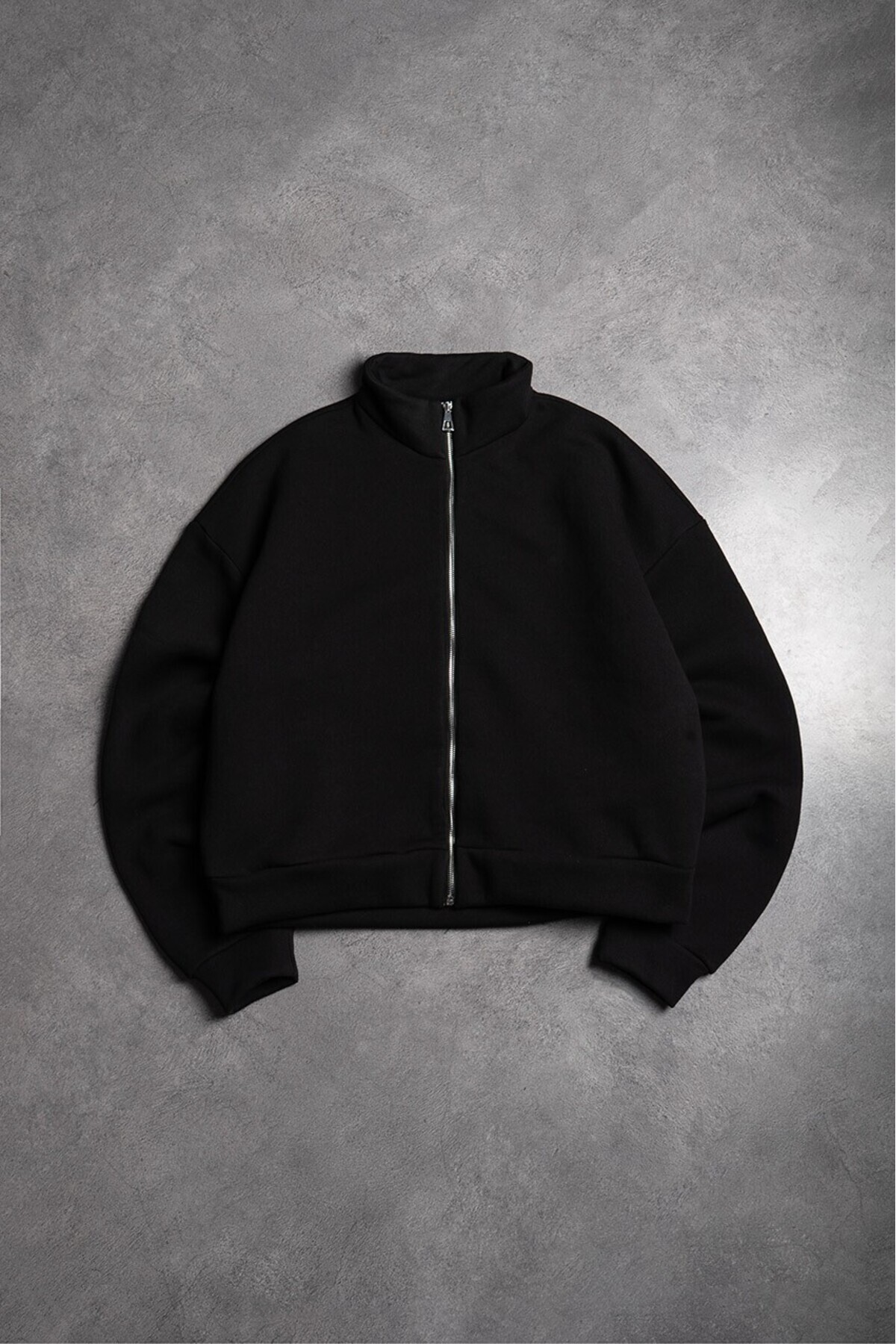 ميزات سترة رجالية سوداء من Concrete Zip من Crupt Studio