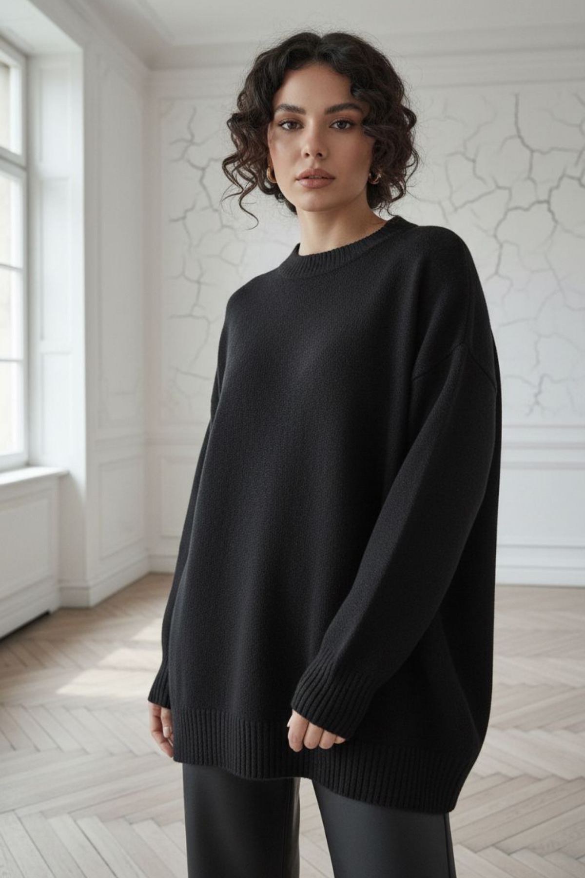 ميزات سترة سوداء كبيرة الحجم من Curly