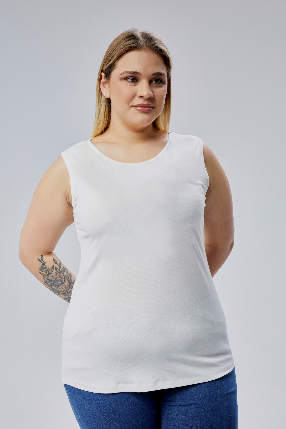 Curvy Trend بلوزة أساسية من الفيسكوز بدون أكمام مقاس كبير