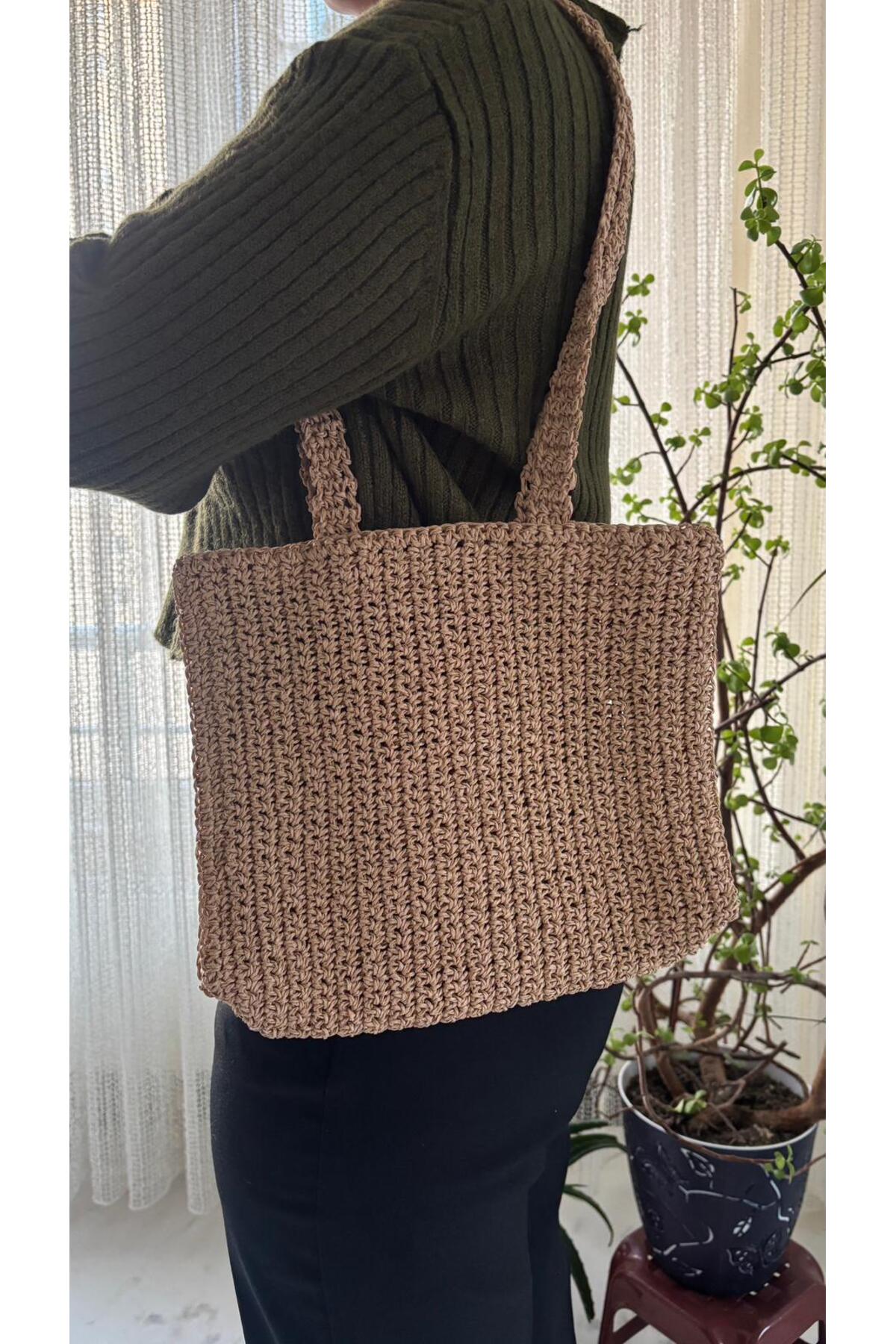 ميزات حقيبة مخططة متوسطة الحجم محبوكة يدويًا من D B Morph